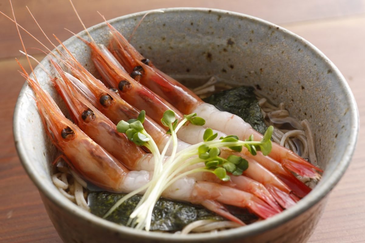 厳選した兵庫県産のそば粉と城崎でつくる本格手打ち麺。