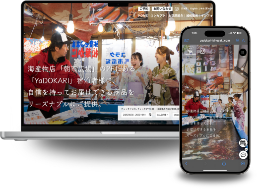 城崎温泉にある宿泊施設「YaDOKARI」様より、宿泊予約サイト制作のご依頼をいただきました。