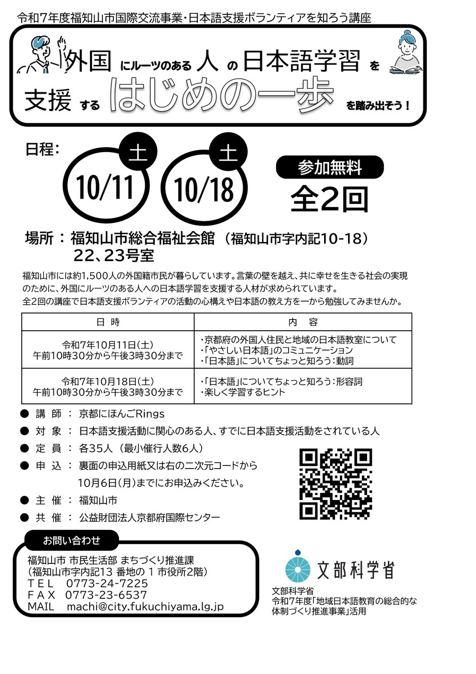 | お問い合わせ | 福知山市 市民生活部 まちづくり推進課 (福知山市字内記13 番地の 1 市役所2階) T E L 0773-24-7225 F A X 0773-23-6537 MAIL machi@city.fukuchiyama.lg.jp |