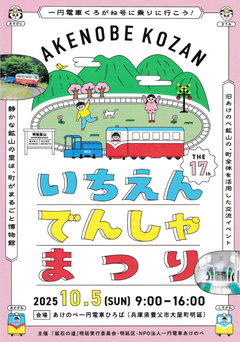 | 関連サイト | https://www.akenobe-kozan.com/2025/08/28/%e7%ac%ac17%e5%9b%9e%e3%80%80%e4%b8%80%e5%86%86%e9%9b%bb%e8%bb%8a%e3%81%be%e3%81%a4%e3%82%8a%e3%81%ae%e3%81%8a%e7%9f%a5%e3%82%89%e3%81%9b/ |