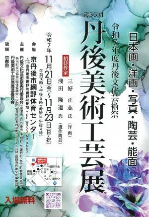 丹後の芸術文化の育成と向上のため、1989年より毎年秋に開催され、全国的にも珍しい能面部門も有する歴史と由緒ある美術展『丹後美術工芸展』が今年も開催されます。
