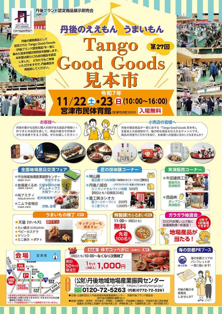| お問い合わせ | 主催: 公益財団法人 丹後地域地場産業振興センター(アミティ丹後) お問い合わせ: アミティ丹後(TEL 0772-72-5261) |