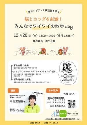 福知山市では、運動やスポーツなどの多様な活動を盛んにすることで、心身ともに健やかで豊かな生活を送ることができるまち「アクティブシティ」の実現に向けた取り組みを進めています。今回、その取り組みの一環として、ウォーキングイベントを開催します。