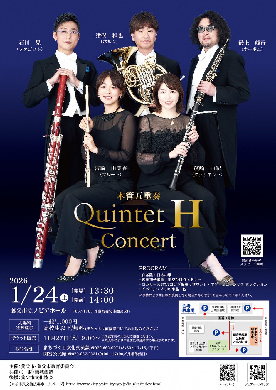 ノビアホールにて、「木管五重奏 Quintet H Concert」を開催します!