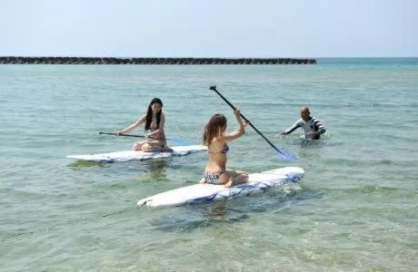 スタンドアップパドルボードの略で、サーフボードより少し大きいボードの上に立ち、パドルを漕いで水面を進む、ハワイ発祥のウォーターアクティビティです。