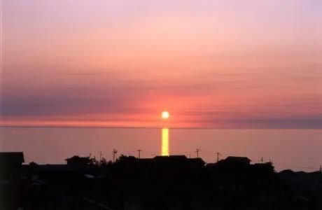 浜詰海水浴場から見る夕日は、独特の色(鮮やかなピンク)をしており、何とも云い難い幻想的な世界を映し出します。