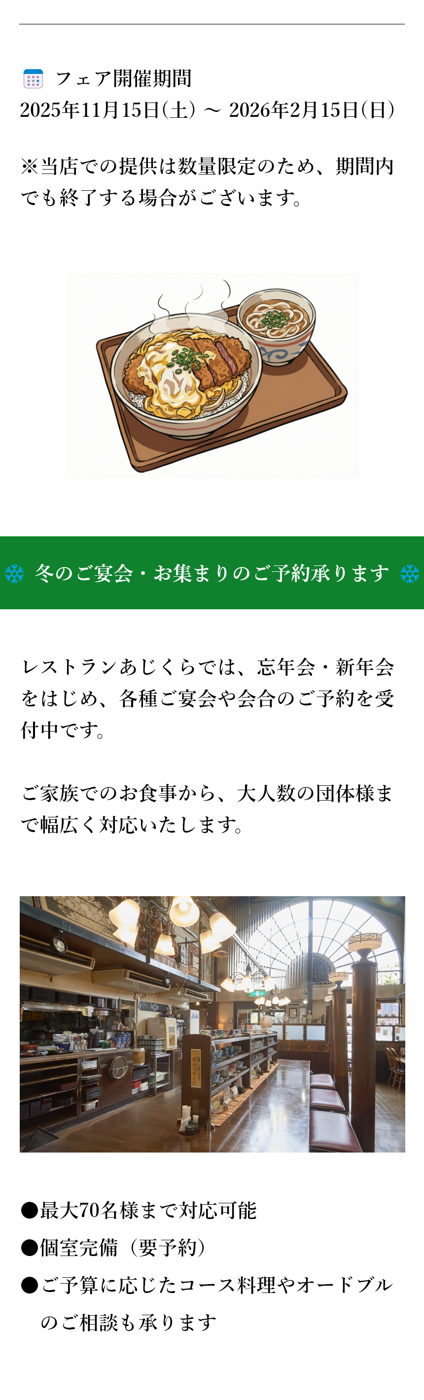 いつも「レストランあじくら」をご利⽤いただきありがとうございます。
