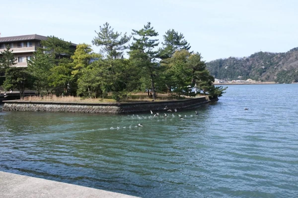 楽々浦湾の水面の浮弁天嶋には閑寂な趣があり、屋形舟で水上から眺めることもできます。