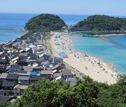 竹野海水浴場の特徴は、その美しい砂浜で、キメが細かく、サラサラとした白砂が広がっています。海藻類もほとんど見られず、泳ぎやすい環境が整っています。透明度も非常に高く、浅瀬では足元までクリアに見えるため、安心して泳ぐことができます。遠浅であるため、お子様の海水浴デビューにも最適です。海水浴場の中央部は特に遠浅で、大人の方でも足が着く深さのエリアがほとんどです。